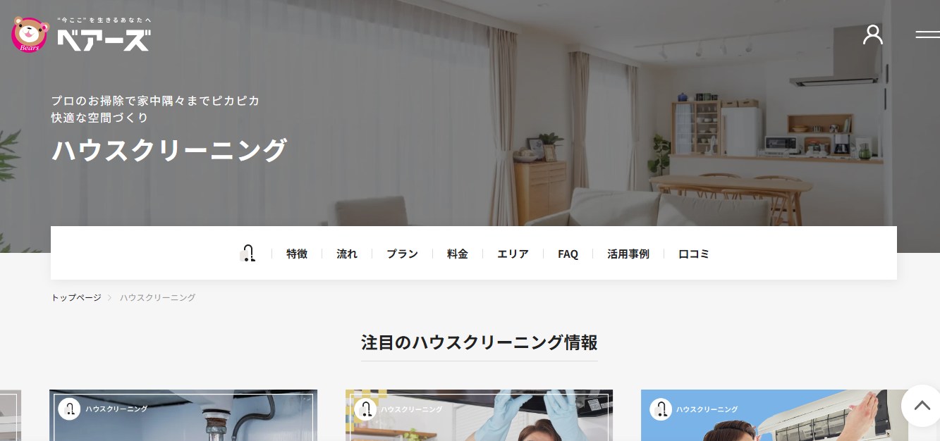 ベアーズのハウスクリーニングは、「品質重視で安心して任せたい人向け」のサービスです。
