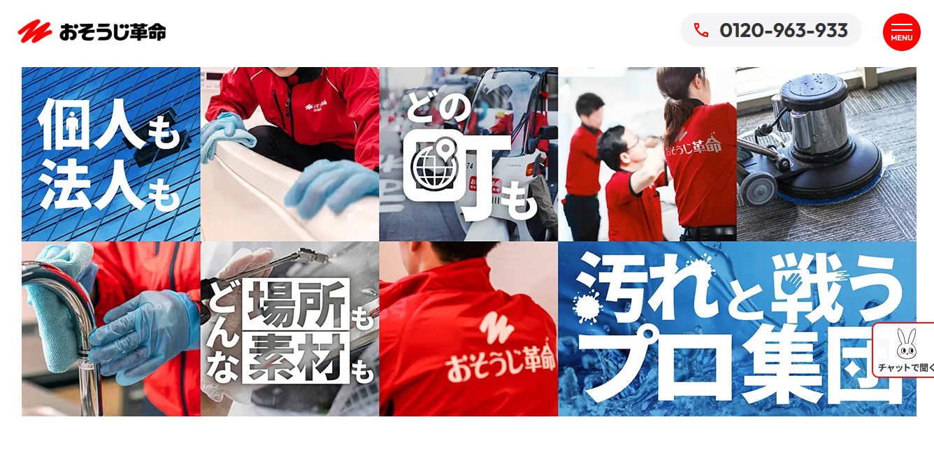 | サービス種類 | エアコンクリーニング 水回りクリーニング 洗濯槽・洗濯機クリーニング お風呂・浴室クリーニング 換気扇クリーニング トイレクリーニング キッチンクリーニング 洗面所クリーニング 引っ越し前後のおうちクリーニング 窓掃除・サッシクリーニング ベランダ・バルコニークリーニング 室内除菌・消毒 ノロウイルス消毒 冷蔵庫クリーニング お部屋の消臭・脱臭 |